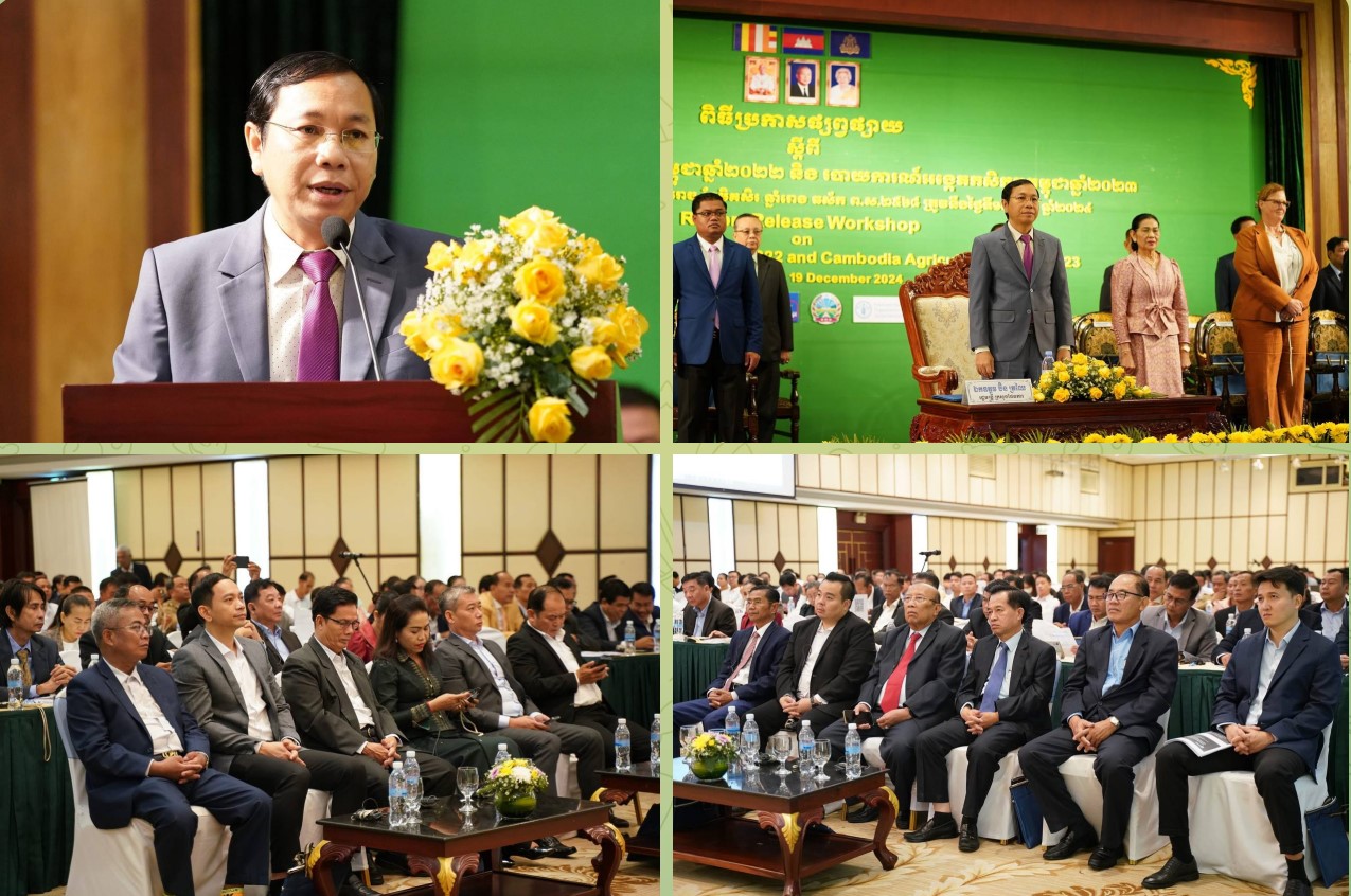 (រាជធានីភ្នំពេញ)៖ នាព្រឹកថ្ងៃទី១៩ ខែធ្នូ ឆ្នាំ២០២៤ វិទ្យាស្ថានជាតិស្ថិតិ នៃក្រសួងផែនការ បានប្រារព្ធពិធីប្រកាសផ្សព្វផ្សាយស្តីពី របាយការណ៍អង្កេតកសិកម្មកម្ពុជាឆ្នាំ២០២២ និងរបាយការណ៍អង្កេតកសិកម្មកម្ពុជាឆ្នាំ២០២៣ ក្រោមអធិបតីភាពដ៏ខ្ពង់ខ្ពស់របស់ ឯកឧត្តម ប៊ិន ត្រឈៃ រដ្ឋមន្ត្រីក្រសួងផែនការ។ ពិធីនេះ មានការអញ្ជើញចូលរួមពី លោកស្រី Rebekah Bell នាយិកាអង្គការស្បៀង និងកសិកម្មនៃសហប្រជាជាតិ (FAO) ប្រចាំកម្ពុជា, ឯកឧត្តម គិត សេង អនុរដ្ឋលេខាធិការក្រសួងកសិកម្ម រុក្ខាប្រមាញ់ និងនេសាទ, ឯកឧត្តម លោកជំទាវ ជាថ្នាក់ដឹកនាំជាន់ខ្ពស់នៃក្រសួងផែនការ ថ្នាក់ដឹកនាំនិងមន្ត្រីជំនាញនៃវិទ្យាស្ថានជាតិស្ថិតិ និងតំណាងក្រសួង ស្ថាប័ន និងដៃគូរអភិវឌ្ឍ។