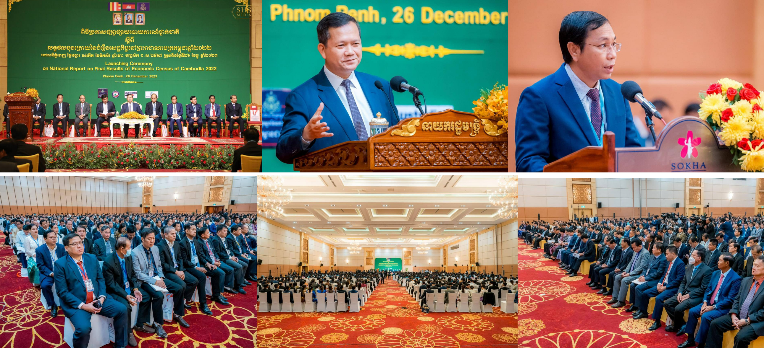 ពិធីផ្សព្វផ្សាយរបាយការណ៍ថ្នាក់ជាតិ ស្តីពីលទ្ធផលចុងក្រោយនៃជំរឿនសេដ្ឋកិច្ចនៅព្រះរាជាណាចក្រកម្ពុជាឆ្នាំ២០២២ ក្រោមអធិបតីភាពដ៏ខ្ពង់ខ្ពស់របស់ សម្តេចមហាបវរធិបតី ហ៊ុន ម៉ាណែត នាយករដ្ឋមន្ត្រី នៃព្រះរាជាណាចក្រកម្ពុជា នាព្រឹកថ្ងៃអង្គារ ១៤កើត ខែមិគសិរ ឆ្នាំថោះ បញ្ចាស័ក ព.ស២៥៦៧ ត្រូវនឹងថ្ងៃទី២៦ ខែធ្នូ ឆ្នាំ២០២៣ នៅសណ្ឋាគាររ៉េស៊ីដង់ សុខាភ្នំពេញ ៕